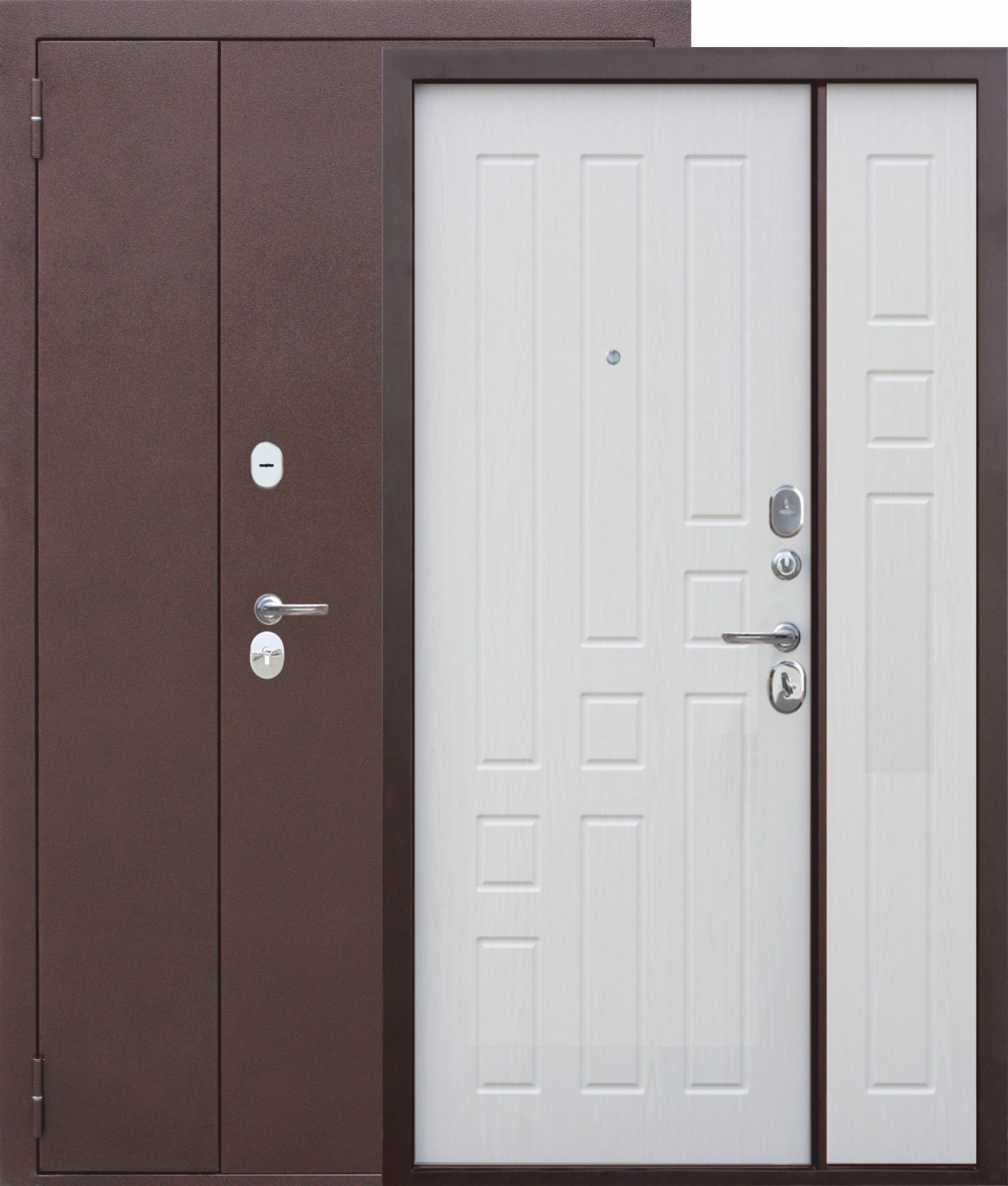 Дополнительный замок сувальдный КАРАТ, IV (наивысший) класс взломостойкости, дополнительная защита от высверливания: две пластины из высоколегированной стали с обеих сторон замка; диаметр ригелей: 16 мм